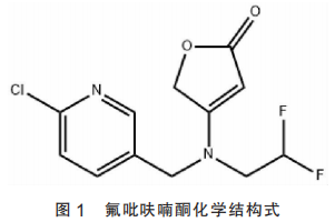 氟吡呋喃酮(flupyradifurone)是由德国拜耳公司针对部分新烟碱类杀虫剂存在着对蜜蜂高毒问题,在丁烯酸内酯类化合物结构基础上进行修饰和改性研发上市的一种全新的新烟碱类杀虫剂。